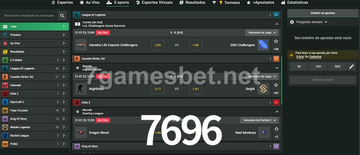 A aposta 7696 oferece aos jogadores a experiência mais conveniente de apostas em eSports!